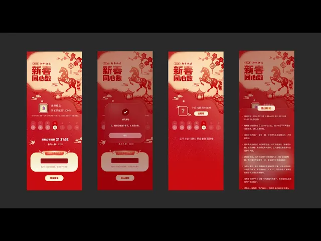 For the "Lunar New Year Treasure Hunt" campaign, the V1 iteration was anchored in profound cultural resonance. I deliberately adopted a traditional paper-cutting aesthetic to embody the auspicious concept of "Arriving Fortune" (Fu Dao Le), seamlessly integrating bespoke paper-cut horse motifs to craft a highly immersive festive atmosphere.